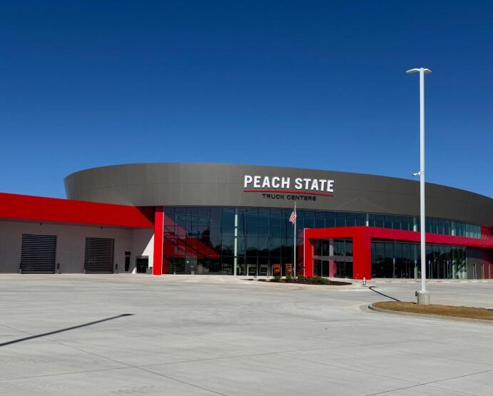 Located at the corner of Edge and Liberty Road off exit 26 on I-20, Peach State Truck Centers' new facility in Villa Rica is a state-of-the-art campus situated on 24 acres and spans an impressive 140,000 square feet. Under the leadership of General Manager Aaron Patterson, the facility features 57 total service bays, including 15 designated for Express Assessment and 42 interior shop bays to efficiently handle a wide range of service needs. Customers benefit from the convenience of a drive-thru parts will-call area, as well as a spacious 7,000-square-foot retail and food café. The site also offers 32 overnight paid parking spaces for trucks and trailers.